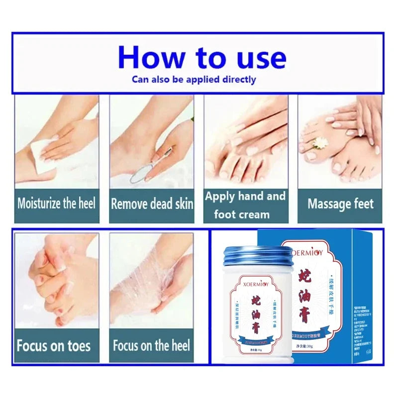 Usage: After cleaning the feet or hands with warm water, take an appropriate amount of this product and apply it on the skin of the feet or hands, gently massage until absorbed, 3 times a day.